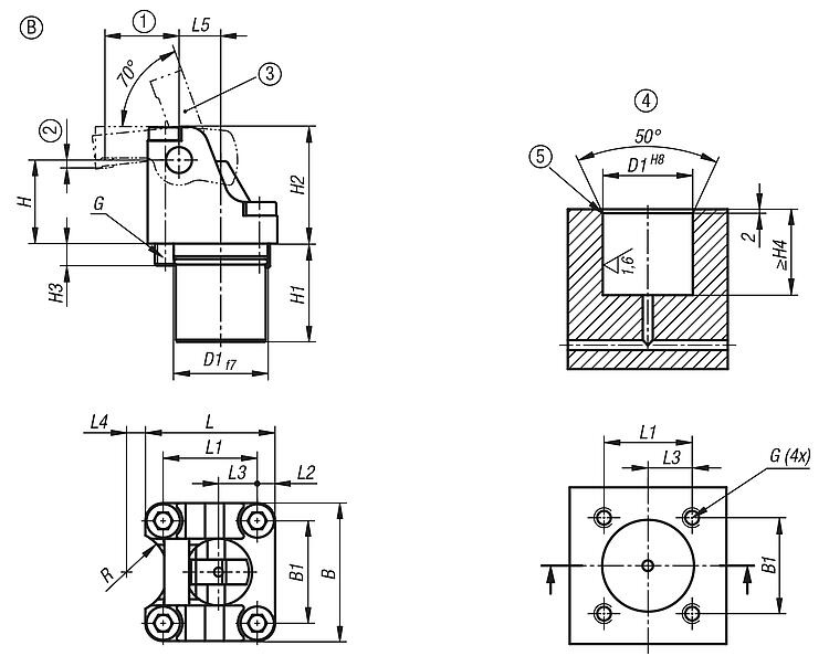 DescriptionProduct description:Rotary lever clamps are highly suited for use in cramped conditions. Due to the compactness of the rotary lever clamps, they can be used in a variety of ways in clamping fixtures with little use of space and thus often enable flexible solutions.Material:Housing and piston steel.Version:Housing black oxidised.