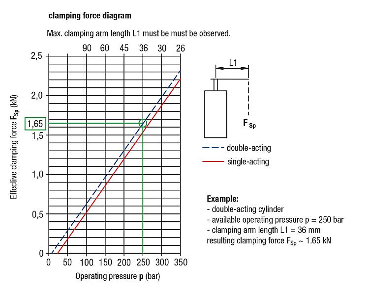The clamping force diagrams for the swing clamps are decisive for the dimensioning of the clamping arms.