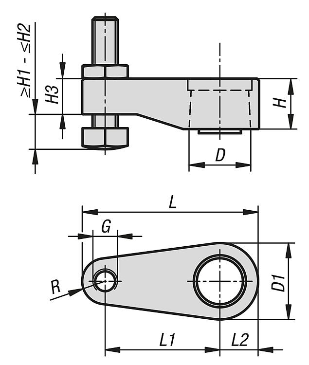 DescriptionProduct description:Single clamping arm for compact swing clamps 04368. The fastening material is supplied with the compact swing clamps.Material:Steel.Version:Black oxidised.Note:Information on the clamping arm mountings as well as the effective clamping force depending on the operating pressure must be considered individually for each swing clamp.