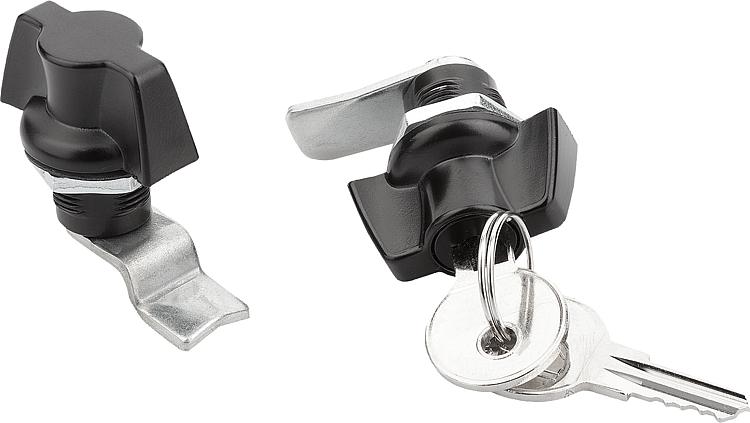The lockable quarter-turn locks are supplied with 2 keys. The key can be removed in both positions (opened and closed). The cylinder locks have a single key system i.e. the same key works in all locks (cylinder lock 2233).