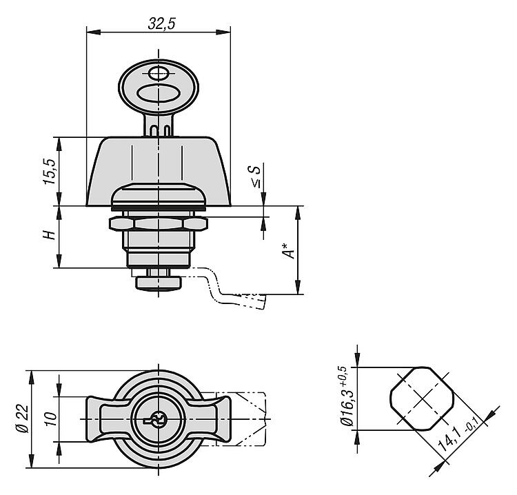 *Dimension A results from the combination of the quarter turn lock and the tongue and is specified with the matching tongues.