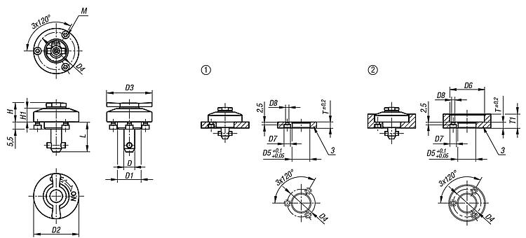 Mounting option 1 for plate thickness 6 or 12 mm.
