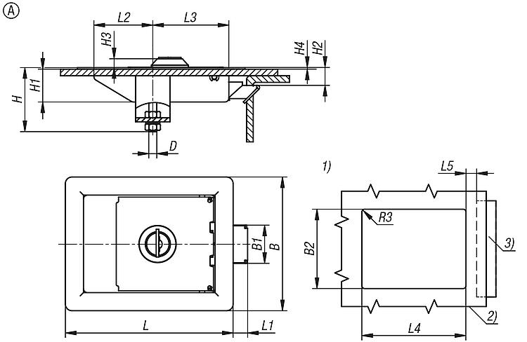 The latches have a single key system, i.e. each lock can be opened with the same key.Type of operation:When the grip is pulled, the latch moves into the open position and the door can be opened. The door latches automatically when pushed shut.Assembly:1. Cut out a mounting hole as shown in the drawing. 2. Insert the latch into the mounting hole from the front. 3. Tighten the nut from behind, this pulls the mounting bracket onto the door panel and fixates the lock in the mounting opening.Supplied withNuts and mounting brackets are supplied. The lockable snap locks are each supplied with two keys.Drawing reference:1) Installation cut-out 2) Door leaf 3) Frame Special features: DownloadHere is all the information as a PDF datasheet: