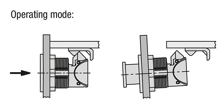 Type of operation:When not actuated, the knob is flush with the housing. When the knob is pressed, it springs out and can be used to pull the door open. The door latches automatically when pushed shut. Press the knob in again to make it flush with the housing.Application:- Automobile industry