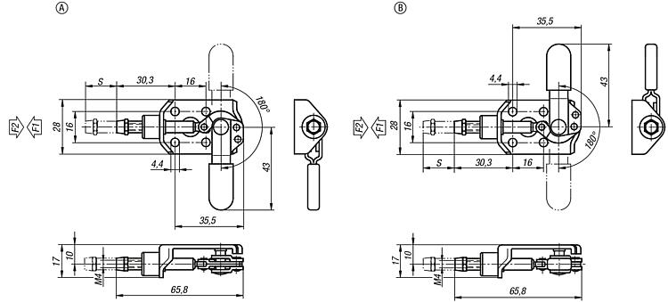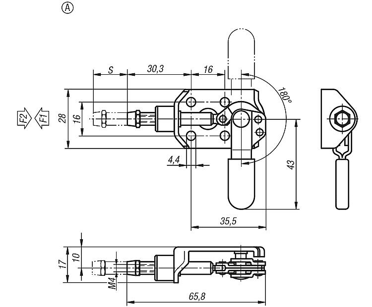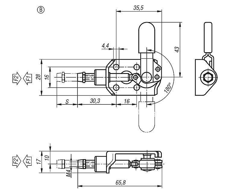 DescriptionMaterial:Steel.Version:Trivalent passivated. Plastic grip oil resistant.Note:Push-pull toggle clamps with very low profile. As the clamps lock in the open and closed handle positions, they can be used to clamp when pushing or pulling.Drawing reference: