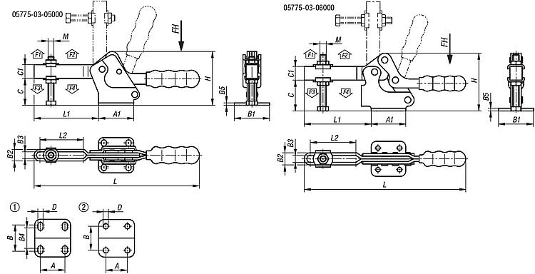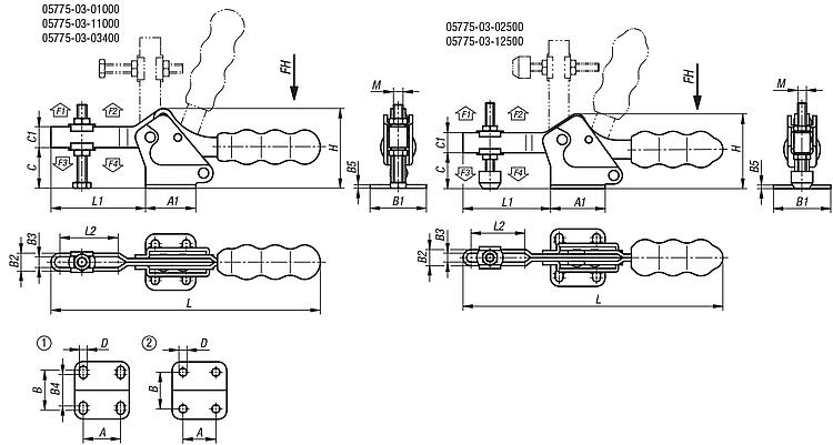 Datasheet 05775-03 Toggle clamps horizontal with flat foot and adjustable clamping spindle 431 kB