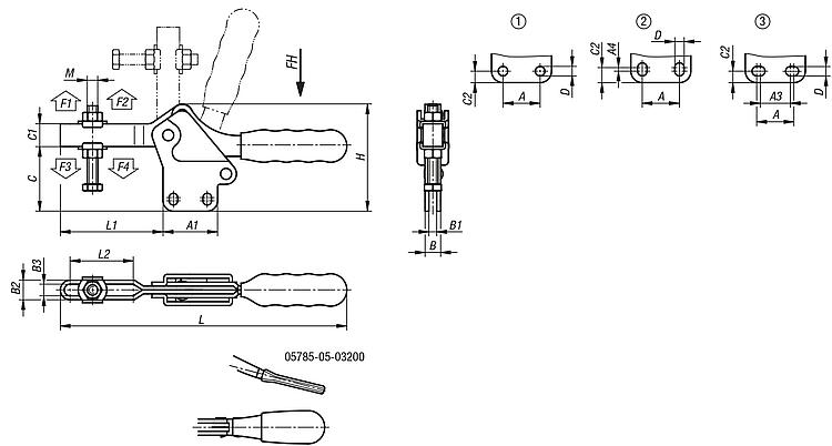 Datasheet 05785-05 Toggle clamps horizontal with straight foot and adjustable clamping spindle 254 kB