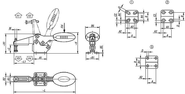 Toggle clamps horizontal with flat foot and adjustable clamping...