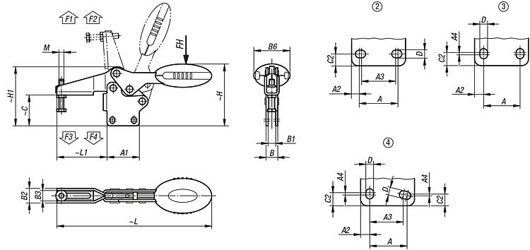 Datasheet 05904 Toggle clamps horizontal with straight foot and adjustable clamping spindle 131 kB