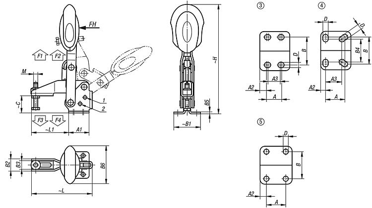 Datasheet 05908 Toggle clamps vertical with safety interlock with flat foot and adjustable clamping spindle 244 kB