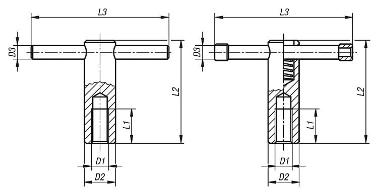 06140Tommy bars with fixed or sliding T-bar, DIN 6305 or DIN 6307 |