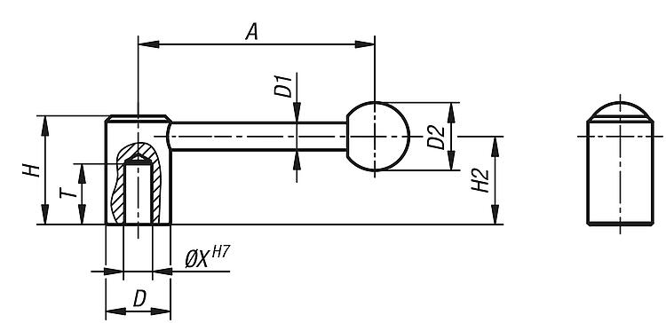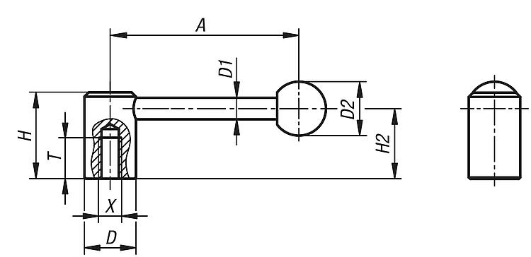Ball knob black plastic. Version:Stainless steel parts bright. Ball knob polished.Note:Tension levers can be used for simple clamping or control operations. Where applicable, there must be enough space available so that the grip can be rotated 360°.On request:Other female threads, reamed holes and special versions. Dimension “A” available in other lengths at extra charge.Special features: DownloadHere is all the information as a PDF datasheet: