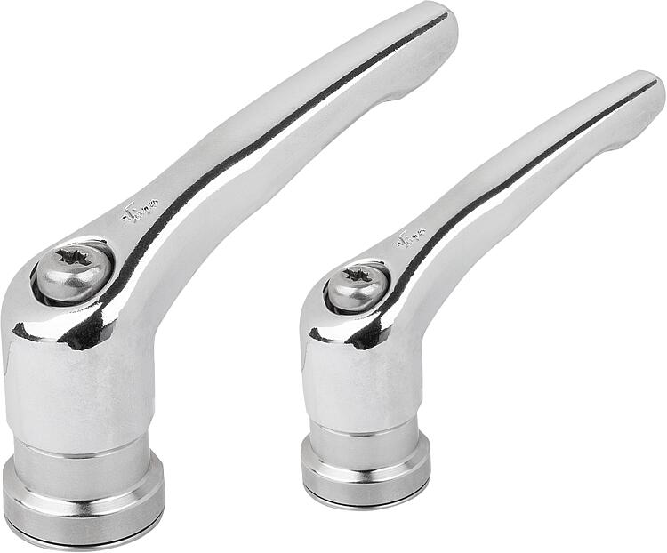 Steel parts stainless steel 1.4305. Version:Handle high-gloss chromed. Steel parts bright. Axial needle bearing with hardened and ground thrust washer.Type of operation:In the default position, the handle is engaged with the threaded insert through a toothed ring. By lifting the handle, it can be repositioned and re-engaged in the toothed ring by spring force.Application:Machine, equipment and plant construction, rehabilitation sector.Advantages:Significant increase of the clamping force with the same tightening torque. High quality axial needle bearing with high load rating and long service life. The component surface is protected by the stationary lower ring.On request:Other colours.Special features: DownloadHere is all the information as a PDF datasheet: