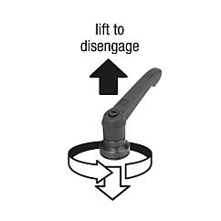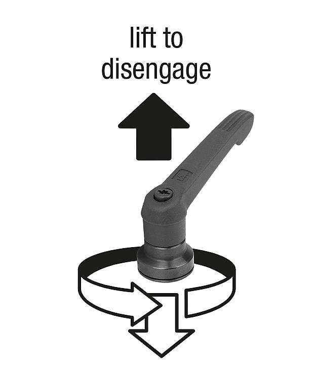 Type of operation:The handle lever is engaged in the toothed insert by means of a toothed ring when not actuated, enabling the thread to be tightened or loosened. By lifting the handle, it can be repositioned and re-engaged in the toothed ring by spring force.Application:Machine, equipment and plant construction, rehabilitation sector.Assembly:The screw-in depth must be at least 2 x the thread diameter and the thread should be lubricated lightly during installation.Advantages:Significant increase of the clamping force with the same tightening torque.