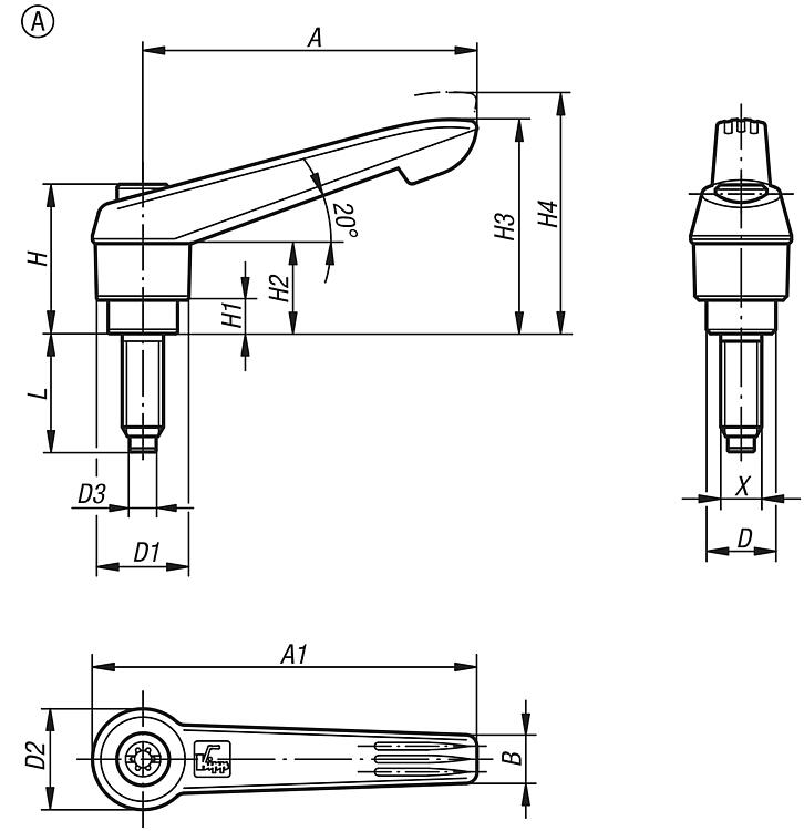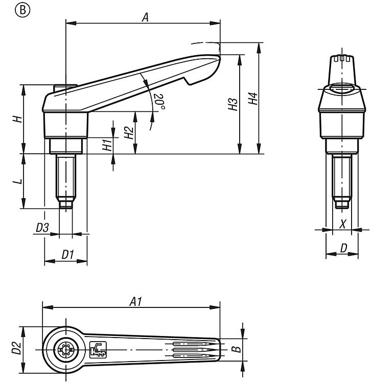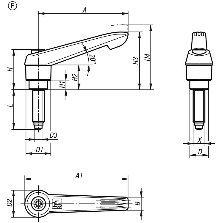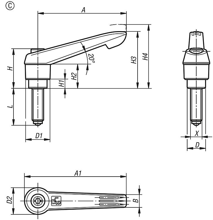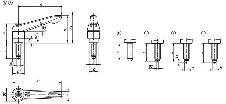 On request:Other threads, screw lengths, clamp lever colours and thrust pin types as well as special versions.
