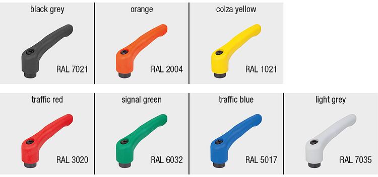 The clamping lever is made of a special high-performance plastic and is available in many standard colours.