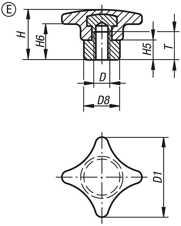 Palm grips similar to DIN 6335, Form G with blind hole