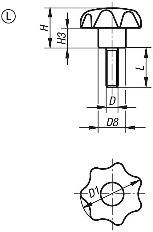 Star grips antistatic similar to DIN 6336, external thread, Form L