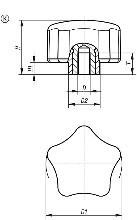 Five lobe grips ergonomic with internal thread