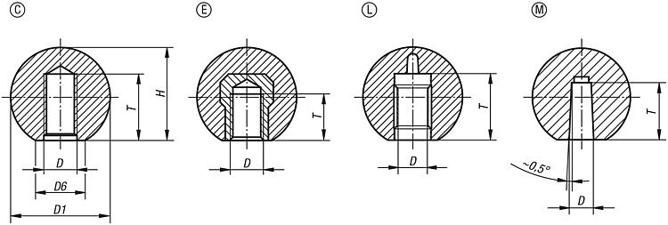 Shank tolerance:Ball knobs with press-fit sleeve can be mounted on standard shafts with tolerance h9. The supplied press-fit sleeve assures a firm and reliable fit.Drawing reference: