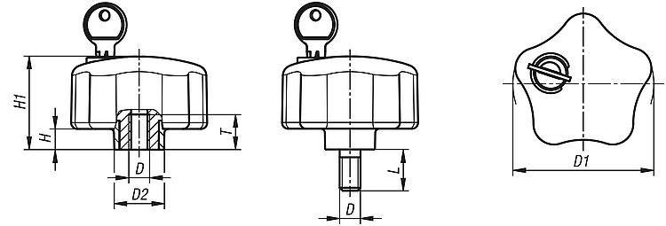 The lockable five lobe grips are supplied with 2 keys each. The key can be removed in the open and closed position. The locks are a single-key system, i.e. the same key works in all locks. On request:Other versions.Special features: DownloadHere is all the information as a PDF datasheet: