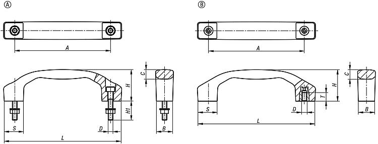 Screw-on dimension "A" applies after grip assembly. In the unassembled state it may deviate through flexural stress by deforming. Assembly:Form A from the front. Form B from the rear.Special features: DownloadHere is all the information as a PDF datasheet: