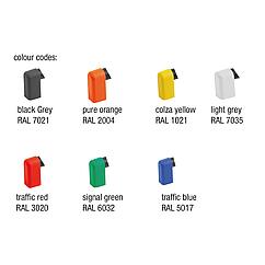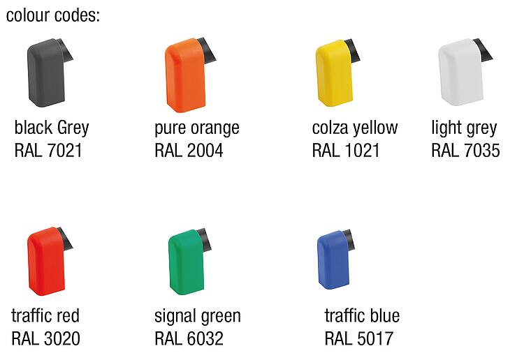 DescriptionMaterial:Round tubes aluminium or stainless steel End pieces thermoplastic.Version:Aluminium round tubes anodised natural tone or black. Stainless steel round tubes ground. End pieces black-grey RAL 7021, pure orange RAL 2004, colza yellow RAL 1021, signal green RAL 6032, traffic blue RAL 5017, traffic red RAL 3020 and light-grey RAL 7035.Note:The legs have 4 webs in the hole for the grip tube. When pushing the tube in, these are trimmed off and produce a precise seating. Self-tapping fastening screws for plastic are supplied. The max. tightening torque is 7 Nm.Assembly:From the rear.Advantages:Mounted using self-tapping screws Installed from the rear End pieces in various colours Individual centre distances on requestOn request:Other centre distances.Special features: DownloadHere is all the information as a PDF datasheet: