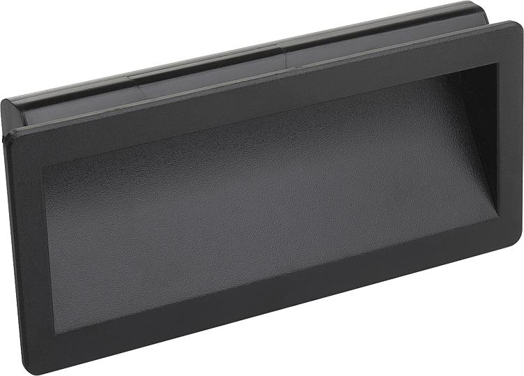 DescriptionMaterial:Thermoplastic (ABS).Version:black.Note:This handle can be used with a wall thickness of 1.5 to 2 mm. The retaining force is 750 N per pair in steel and plate housings.Special features: DownloadHere is all the information as a PDF datasheet: