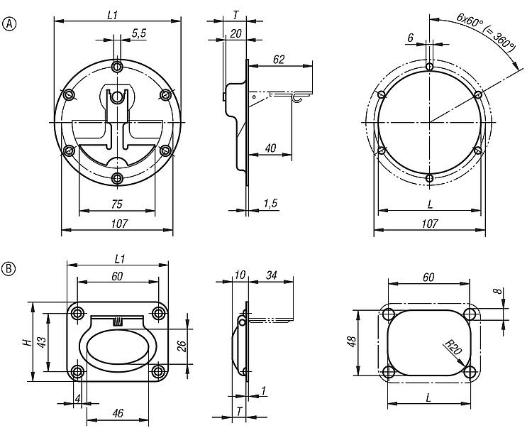 DescriptionMaterial:Stainless steel 1.4301. Version:High-gloss electropolished.Note:Stainless steel retractable grips with marginal installation depth. For base and mounting plates or drawers. With return spring. The grip automatically swivels back into its resting position after use.Special features: DownloadHere is all the information as a PDF datasheet: