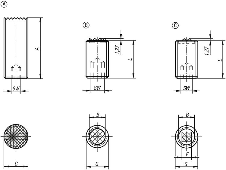 Form A: tool steel Form B: tool steel, carbide diamond grip Form C: 4-point carbide insert