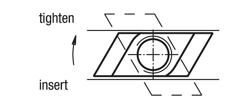 DescriptionMaterial:Carbon steel.Version:Tempered to 8 and black oxidised.Note:The benefit of rhombic nuts for T-slots is that they can be fitted in the slot from the top. They are particularly useful for long T-slots, or when the configuration on the machine table does not permit clamping screws or nuts for T-slots to be inserted from the side.Application:Insert from above then twist in the slot until it stops.Special features: