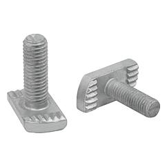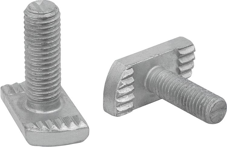 DescriptionProduct description:The hammer-head screws with serration have been specially developed for use with mounting rails.Material:Steel.Version:Hot-dip galvanised. Grade 8.8Note:The serrated hammer-head screw can be inserted into the mounting rail at any point. By turning it through 90°, the rounded head of the screw grips securely in the slot and prevents it from twisting. The special toothing of the hammer head ensures a highly stable and resilient connection, even when mounted vertically. The hammer-head screw can be positioned anywhere in the slot of the mounting rail, permitting for flexible positioning. A slot in the end of the thread indicates the correct alignment of the screw head in the mounting rail.