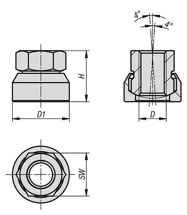 Hexagon nuts with spherical seat
