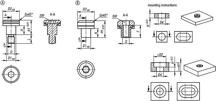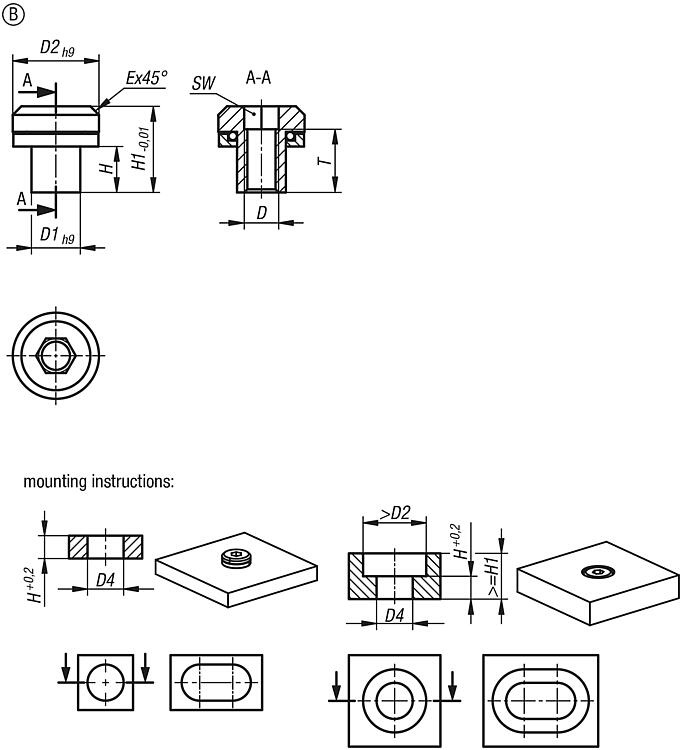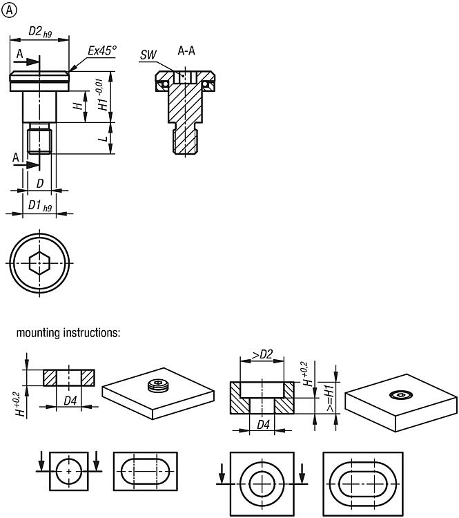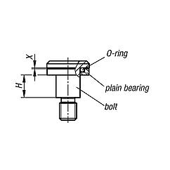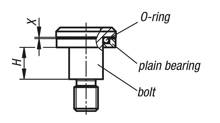 The plain bearing compresses the O-ring when the bolt is screwed into the hole. This occurs by max.the dimension X. The plain bearing will now be seated under the bolt head. The travel is accordingly limited by the installation dimension H +0.2. A floating support is thus always guaranteed.