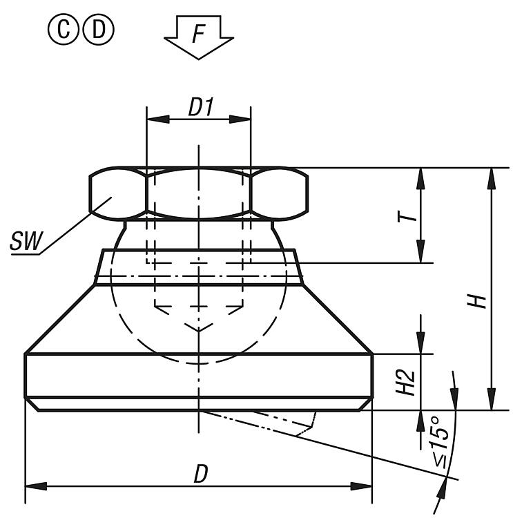 Anti-slip plate thermoplastic elastomer.Version:Form A: Ball element case-hardened and black oxidised. Form B: Bright. Form C: Ball element case-hardened and black oxidised. Form D: Ball element bright. Form G: Ball element case hardened and black oxidised, foot with anti-slip plate.Note:The anti-slip plate absorbs vibrations and prevents the swivel foot slipping The loading indicated in the table is a recommendation up to which permanent static load the swivel foot can be used.Special features: DownloadHere is all the information as a PDF datasheet: