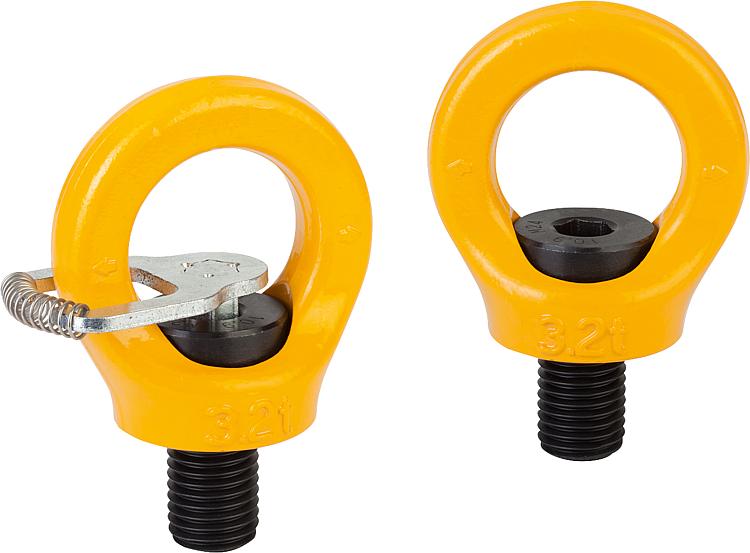 Note:In contrast to DIN 580 ring bolts this ring bolt is rotatable, therefore the load direction is adjustable and unintended tightening or loosening is negated.