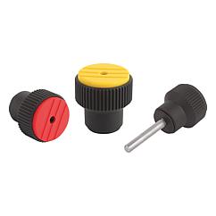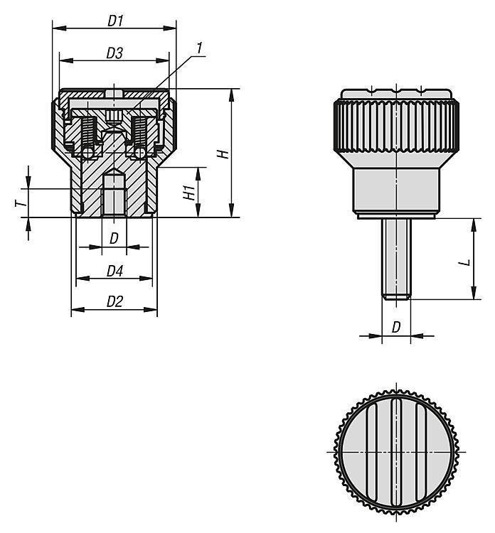 DescriptionMaterial:Thermoplastic, black grey. Bush and screw steel 5.8.Version:Bush black oxidised. Screw trivalent blue passivated.Note:The set screw sets the required torque. The knob de-clutches and turns freely when the desired torque is reached.
