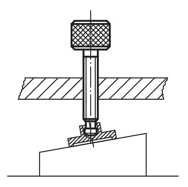 DescriptionMaterial:Steel.Version:Black oxidised.Note:The torque required for the knurled screw is generated by two spring-mounted thrust balls. As soon as the adjustable final pressure is reached, the grip runs free. The final pressure is set using the set screws located in the head. These torque screws are particularly useful when used together with thrust pads (07138, 07140 or 07141) for clamping sloping surfaces.Special features: DownloadHere is all the information as a PDF datasheet: