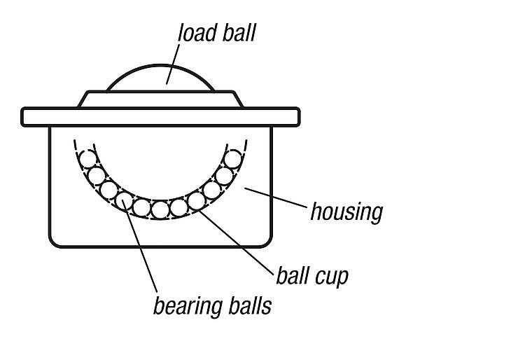 | To determine the load for a ball transfer unit, the weight of the transported goods is divided by 3. If the load ball level is well coordinated, the number of load-bearing ball transfer units can also be calculated, depending on the nature of the transported goods. |