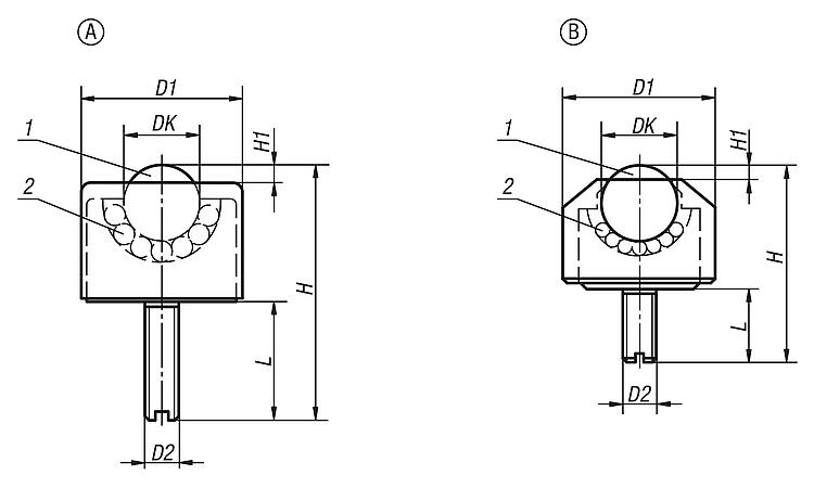 Stainless steel version: Load ball stainless steel. Bearing balls stainless steel. Housing stainless steel. Cover aluminium.Note:The ball transfer units comprise a housing with integrated bearing shell, a cover, a load ball and several supporting balls. For use in measuring instruments, material conveyance in clean rooms and miniature mechanisms.Drawing reference: