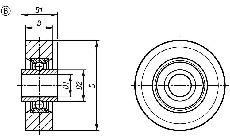 DescriptionMaterial:Roller rim polyurethane (PUR). Bearing steel.Version:Roller rim dark brown.Note:The roller rim is firmly bonded onto a ball bearing. From diameter D = 40 mm, the roller rim has a double-layer