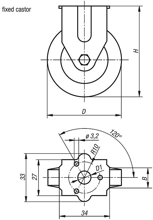 | Order No. | Item | Version 1 | Wheel bearing | B | D | D1 | H | Permissible load kg | CAD | Acc. | Price | Order |