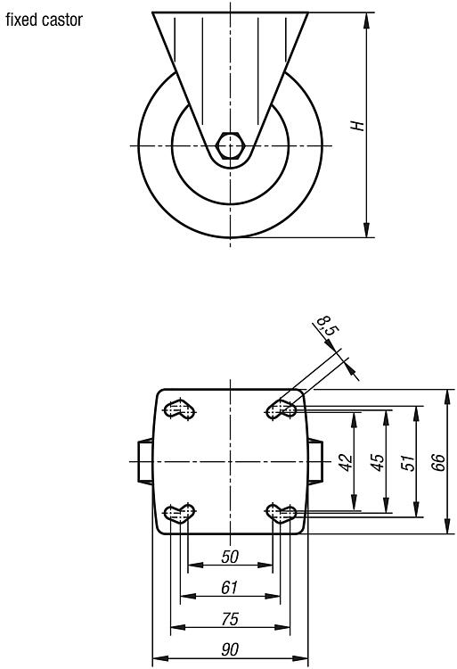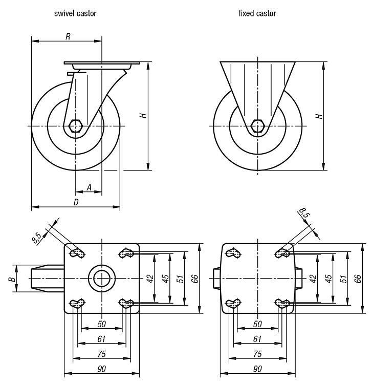| 95012-11125322 | Swivel castor | with stop-fix locking system | Plain bearing | 40 | 32 | 125 | 161 | 102,5 | 80 |  | | on request | |