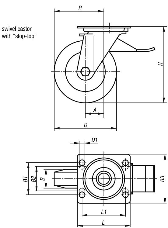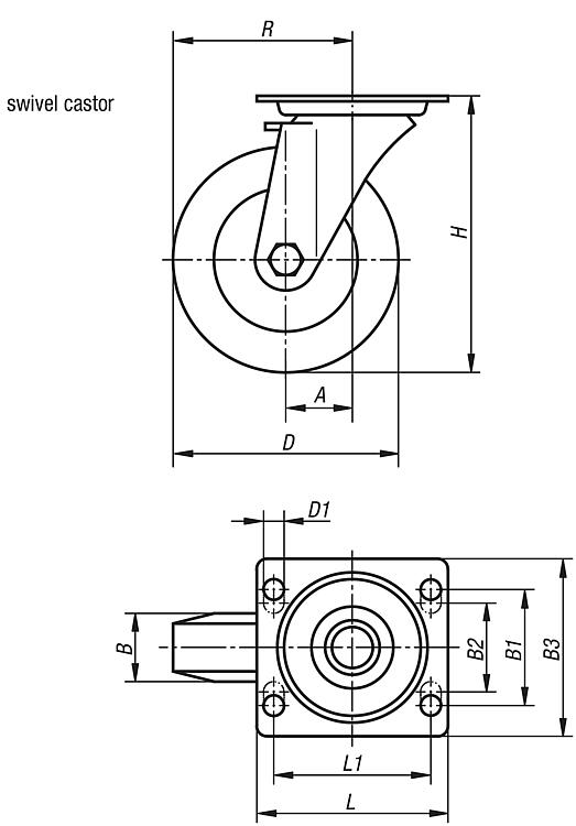 DescriptionMaterial:Housing thick steel plate. Tyres steel-wire reinforced elastic solid rubber. Wheel body welded steel.Version:Housing press formed. Reinforced fork, base plate and centre pin. Double ball bearing with hardened shells in the castor head. Precision ball bearings in the wheels.Note:These castors are particularly impact and shock proof and assure a high service life. Wheel axle bolted. DownloadHere is all the information as a PDF datasheet: