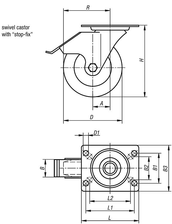 DescriptionMaterial:Housing, steel plate. Wheel tread, high quality polyurethane elastomere. Wheel rims, die-cast aluminium.Version:Housing, press-formed. Swivel housing, double-row ball bearings in a swivel head. Ball bearing wheel axle bearings.Note:Wheel axle bolted. Swivel and fixed castors with mounting plate.Application:Heavy loads can be easily transported using this load handling equipment. The roll and swivel resistance is reduced with this new wheel series designed for intralogistic heavy load applications.Temperature range:-25 °C to +70 °C DownloadHere is all the information as a PDF datasheet: