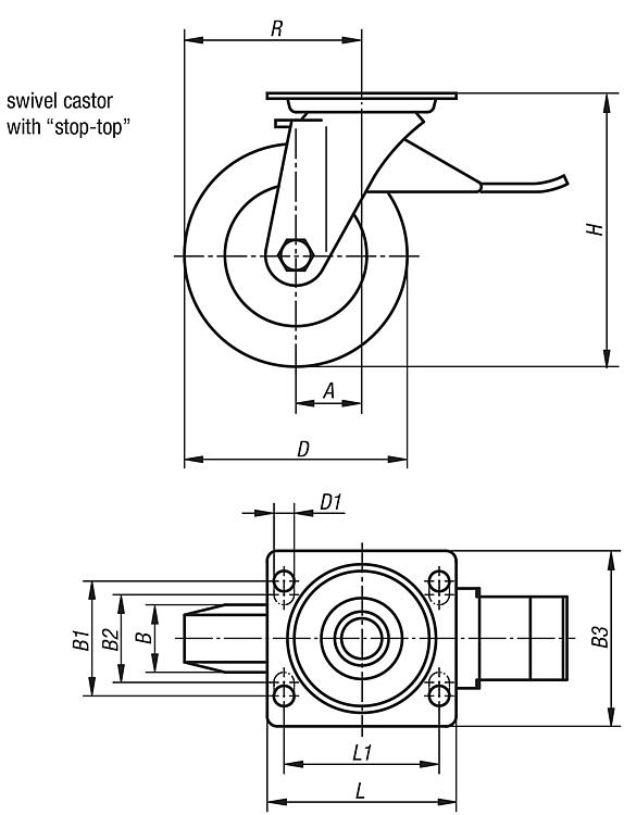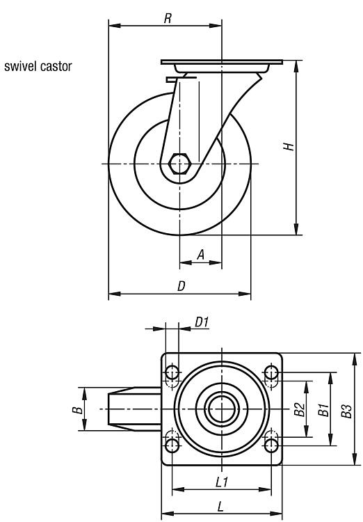 95040Steel plate swivel and fixed castors with polyamide wheels,... |