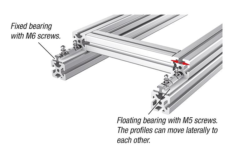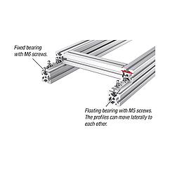Slide guides with several slide carriages must be designed as a combination of fixed bearing (Form F) and floating bearing (Form L). This compensates for form tolerances and ensures light movement.
