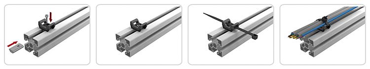 DescriptionMaterial:Polyamide fibreglass reinforced.Version:black.Note:The cable tie block is a fastening component for cables and hoses. Can be mounted on panel elements or aluminium profiles (5 to 12 mm slots) with a cap screw or pan head screw and a slot key.