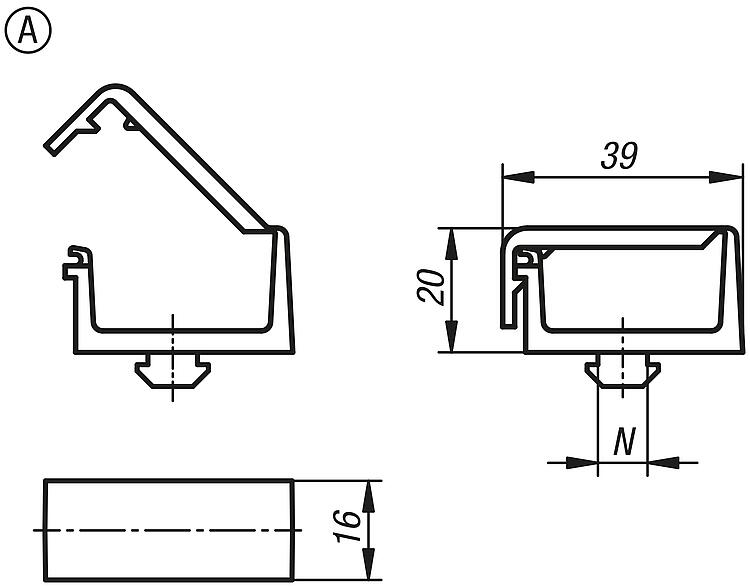 The clip is mounted by inserting the T-key into a T-slot and twisting through 90°. The cables are held in place by the stretched O-ring.