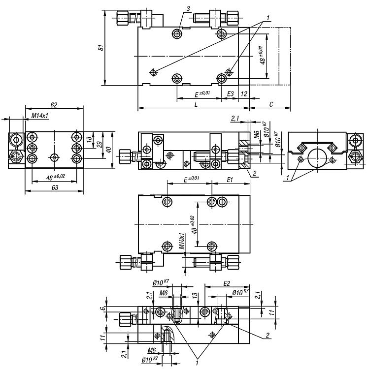 DescriptionMaterial:Housing high-strength aluminium. Stop system steel.Version:Housing anodised. Stop system hardened and black oxidised.Note:Maintenance-free pneumatic linear modules with recirculating ball bearing guide and load capacity of max. 240 N. Control by 4/2 or 5/2 directional valve. pneumatic drive, 4-8 bar, constant, filtered (10 µm), dried, oiled or unoiled. Compressed air connection M5. Modules of the same size can be combined with one another without adapter plates via the precise centring system by means of centring rings 20240. The position of the stop system is variable.